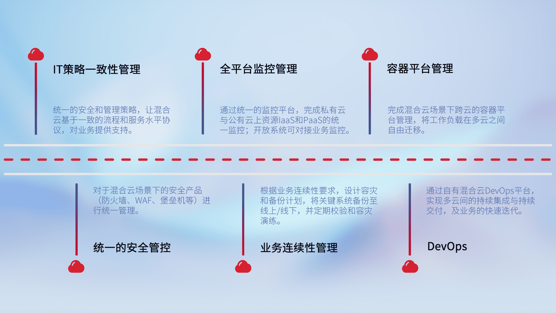 以中立管理模式,,,解决多组织、、、多云、、、、多运维厂商的复杂关系的管理,,,,保证多云平台资源配置的一致性,,,实时掌控云资源运行数据。。。